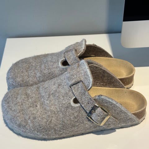 Selger et par helt nye tøfler i størrelse 39 fra Face the winter . De har mykt, grått fuskepelsfôr og en behagelig filtoverside.