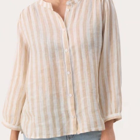 Som ny. Veldig fin genser i lysblå farge. Genseren er strikket i et tynt, fluffy garn som gjør genseren varmende, men fortsatt lett og luftig. Materiale: 70% mohair, 18% ull, 12% polyamid. Står str. L, men liten i størrelse. Passer bedre str. M
