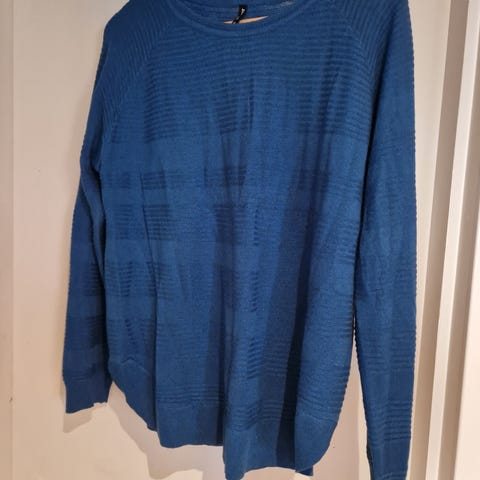 Donna genser i blå farge, laget av bomullsmateriale. Størrelse L for kvinner. Genseren har en enkel og ensfarget design med langermet passform.