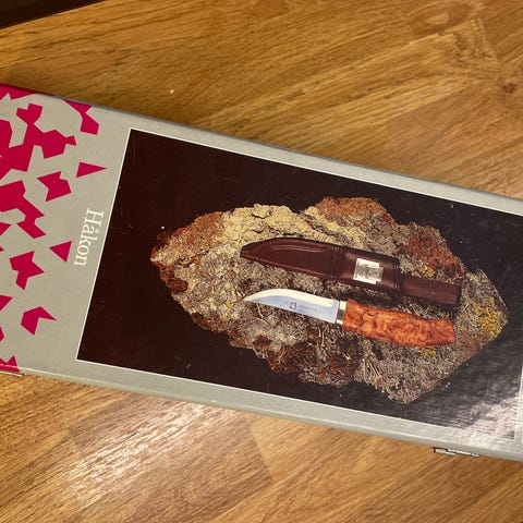 Kniven er ubrukt. Sliren har et lite trykk med logo "Team"