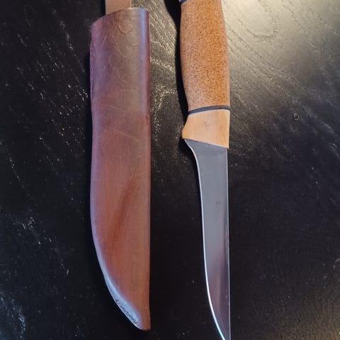 Brusletto Kystkniven jaktkniv med 9 cm blad i stål og brunt trehåndtak. Leveres med brun lærslire og snor for oppheng. Egnet for jakt og friluftsliv.