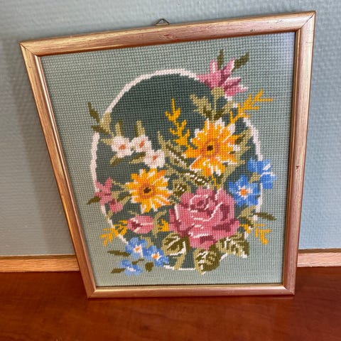 Nydelig brodert blomsterbilde