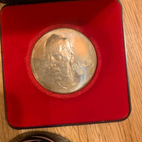 Haakon VII Tung minnemedalje1872 - 1972 i etui Stror Sølv 45 gr 925 Sølv