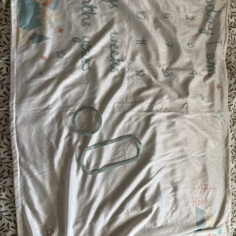 IKEA barneteppe med dinosaurmotiv i blå farger. Teppe med mønster som forestiller dinosaurer og topografiske linjer. Passer til barnerom og lek. Teppe har noen synlige flekker og mindre slitasje. Flekker er ikke forsøkt fjernet