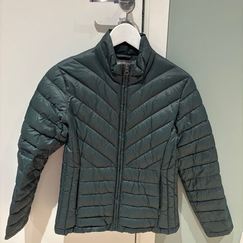 Colmar jakke for kvinner i størrelse 48 (M). Italiensk str. 48 tilsvarer M. Jakken er grønn og laget av polyester. Den har en quiltet design med glidelåslommer og hel glidelås foran.