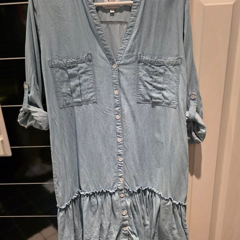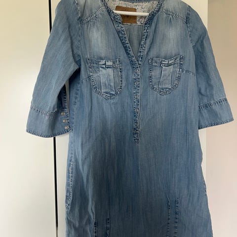 Days Like This Hverdagskjole i størrelse S, laget av tynt og mykt denim materiale. Kjolen er blå og designet for kvinner. Den har en enkel og praktisk stil, egnet for hverdagsbruk.