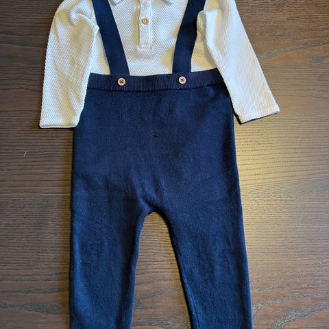 Kun brukt en gang. Veldig pen fest antrekk til gutt, og perfekt jule antrekk. Alt er sydd i ett så den er veldig behagelig å gå med. Myk og god.