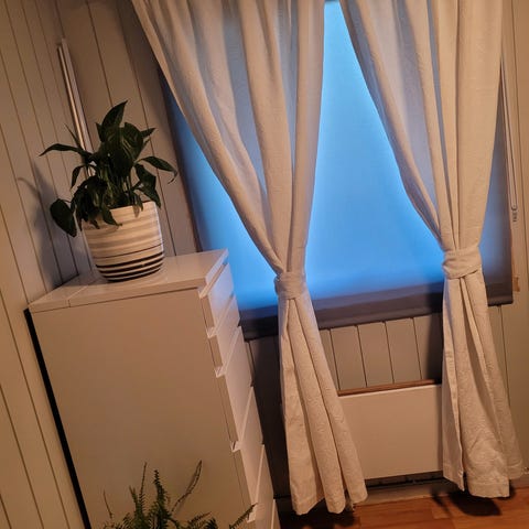 2 lenger tynne hvite gardiner