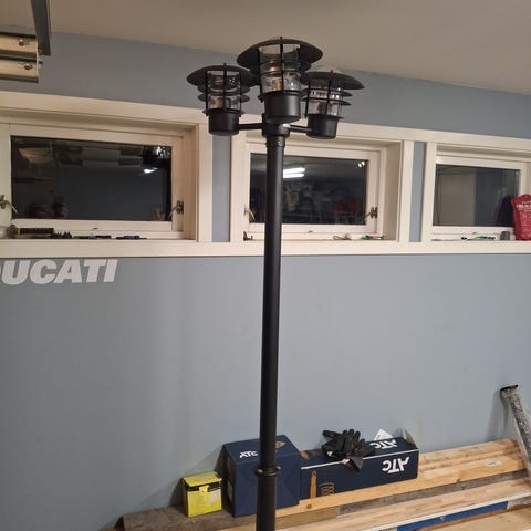 Fakler med fot selges. Høyde 150 cm. Brenner med lampeolje