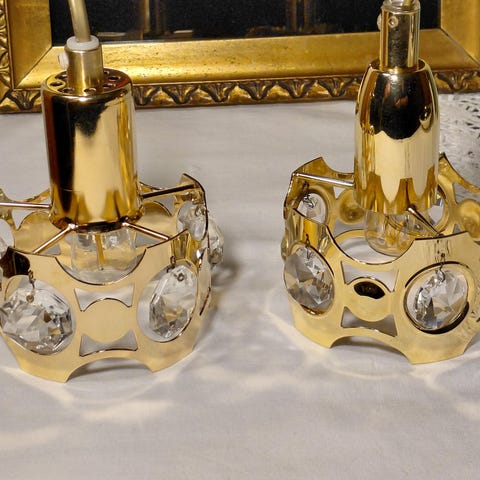 Vintage messing lampe m ekte krystallprismer, fungerer som de skal. Ingen reparasjon eller skade.