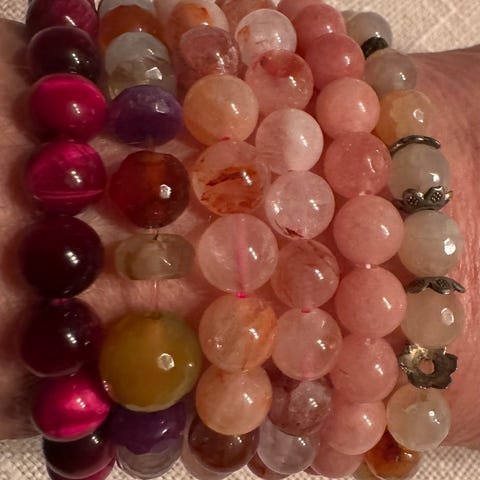 Selges armbånd i stein. Jeg har 3 stk i rød farger selges samlet 3 stk for 280 kr. Og en for 100 kr.