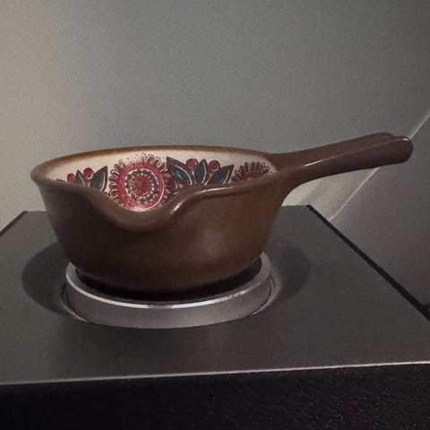 Selger en smørsmelter fra Figgjo. I meget god stand. Ingen krakkeleringer eller nagg å se. Kan hentes i Oslo eller sendes.