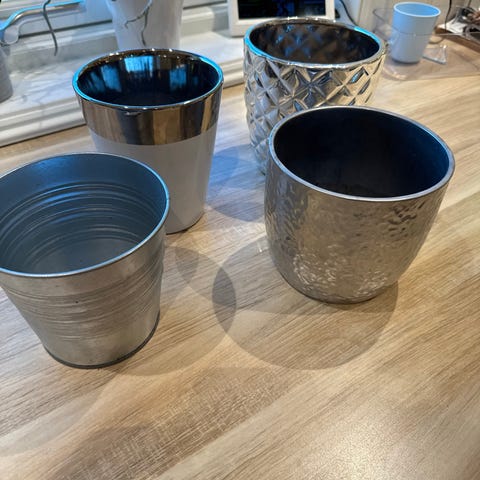 Selger to flotte potter eller vaser fra BC Home. Kjempefine med en liten hengende, grønn plante i.