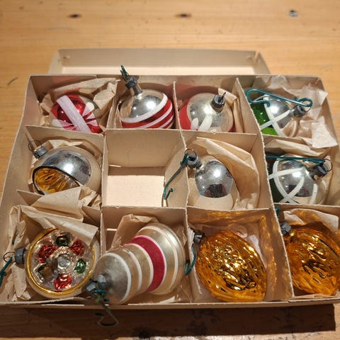 16 stykk flotte julekuler, de kan også fint brukes til dekorasjoner. Selges samlet for 200,-