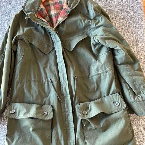 Kjøpt på vintagebutikk i København. Har dessverre fått hull under armen, men ikke synlig når jakken er på. Veldig mulig å fikse!