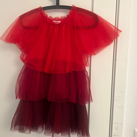 Nydelig kjole med paljetter i gull og rosa tyllskjørt. En favoritt her hjemme, som dessverre har blitt for liten.