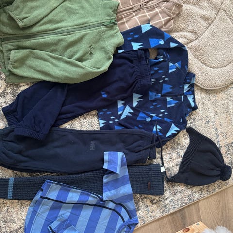 Klespakke med flere gensere og en t-skjorte. Fra forskjellige merker, blant annet GANT, name it, hm og Lindex.