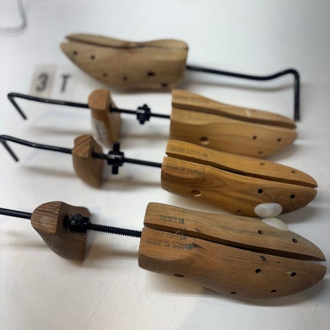 Sett foten med skoen du skal ta av deg inn i hesteskoen. Den andre plasserer du på den brune plata. Enklere å dra av seg skoene på denne måten.
