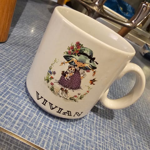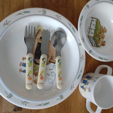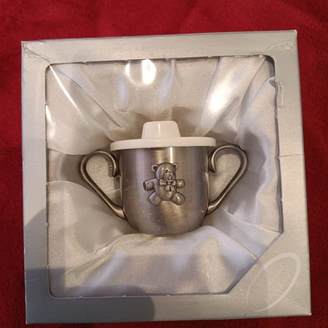 Ubrukt kopp med motivet Karius og Baktus. Slagelse sølvplett.