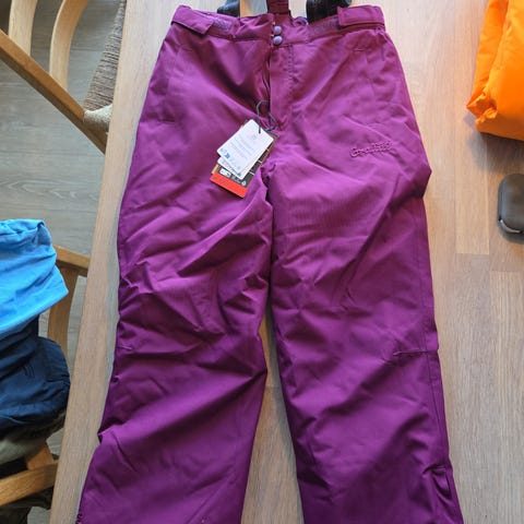 Helt ny! En veldig stilig fiolett/plommefarget - foret myk og god vinterbukse i str. 176. Gode justeringsmuligheter i form av justerbare seler over skuldrene og justerbar midje, samt stretchpanel rundt hoftene. Flere lommer har buksen, samt innvendig snøsperre/snøgamasje.
