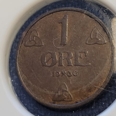 Kong Haakon VIIs aller første 1-øre ble kun preget i årene 1906 og 1907, før den ble erstattet av en ny variant fra 1908.