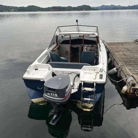 Båten er 15 fot den er godt brukt men funker like fint bare noe få sprekker som jeg har tetta , årer og 5 hester motor følger med. Må hentes selv.