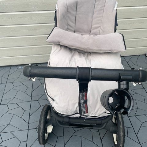 Pakken inneholder parasoll, ekstra sol kalesje , raintrekk, pute til sete så det blir ekstra mykt å sitte (blitt litt misfarget men er fortsatt myk å god),stelleveske, søsken brett med sete, mat brett med koppholdere.