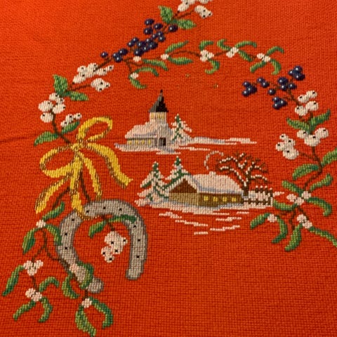 Pent brukt, gammel, håndbrodert Juleduk