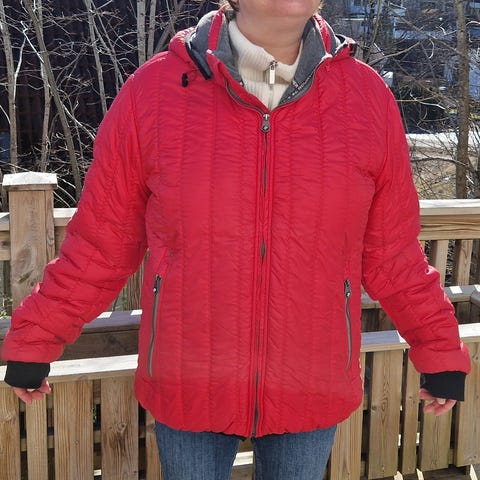 Jean Paul Mercur Down jakke med lett vattering og cordbesetning i kragen og på mansjetten tilsalgs. Kun brukt et par ganger og fin som ny.