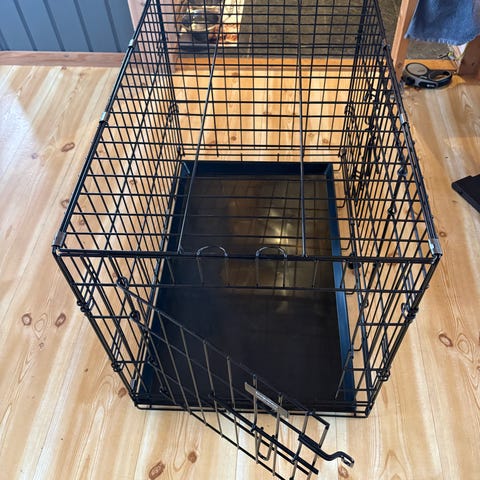Sammenleggbar dyrebur med to dører og smart bærehåndtak. Buret har en stabil bunnplate som kan tas ut. Mål: Lengde 91 cm, Bredde 60 cm, Høyde 66 cm. Passer for transport og oppbevaring av kjæledyr, og kan enkelt flyttes eller demonteres ved behov.