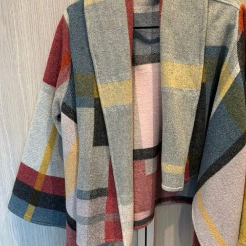 Selger en eksklusiv HOLZWEILER ullponcho, svært lite brukt og framstår som ny. Den er fin til både å ha over jakker og til å bruke som jakke, med og uten belte. Se siste bildet fra Høyer for å se hvordan den ser ut på.