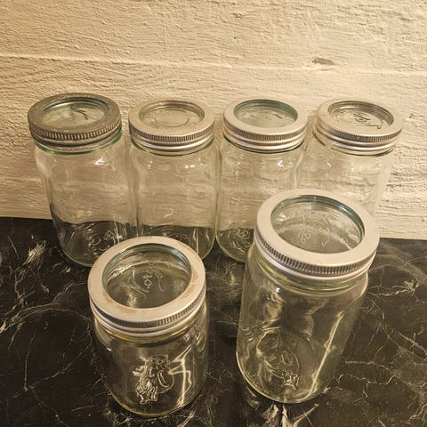 13,5 cm høyt, inkl «gummihåndtak» på 5,5 cm. Diameter 5,5 cm øverst.