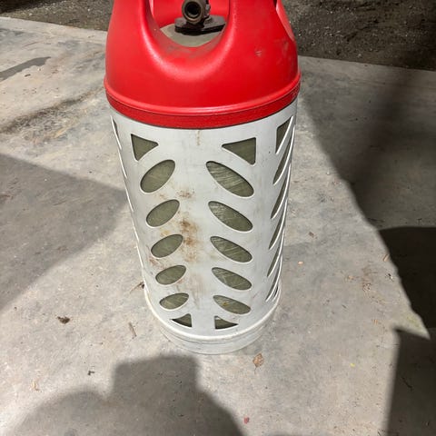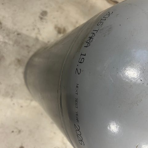 Flaska virker å være full av gass.