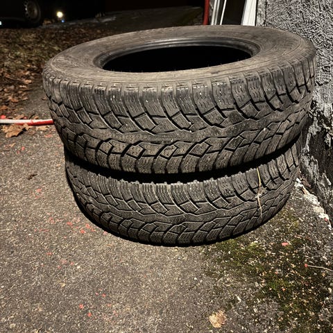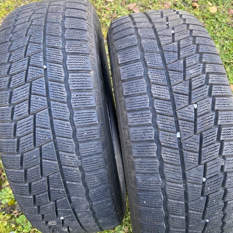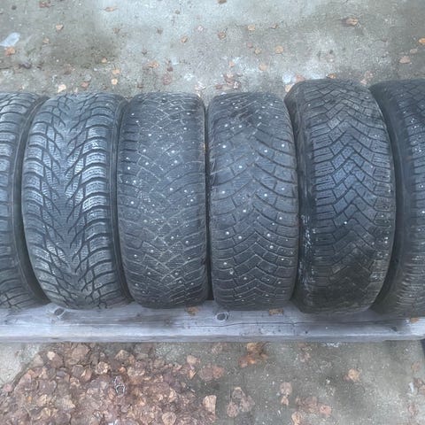Noen pigger mangler, ingen skader, ingen deformasjon, mønsterdybden er ca. 4mm, men dekkene er fortsatt brukbare.