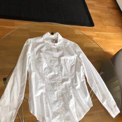 Armani skjorte i bomull, hvit farge, størrelse M for kvinner. Skjorten har lange ermer og knappestolpe med volangdetaljer. Passer til formelle og uformelle anledninger.