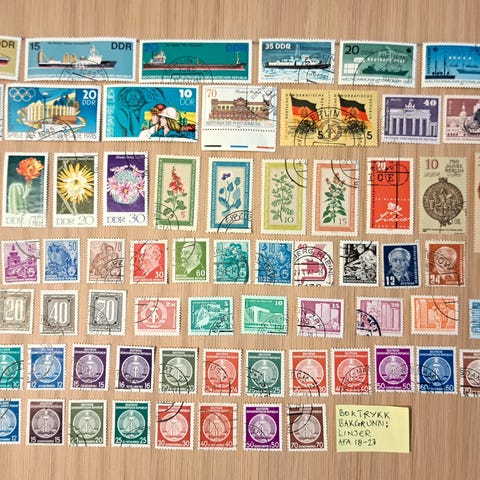129 forskjellige frimerker fra Vest-Tyskland og Tyskland 1977-1995 (Deutsche Bundespost). Verdi ukjent/ikke sjekket. Porto etter postens satser for brev. Portofri sending ved samlet kjøp for minst kr 200 fra mine annonser.