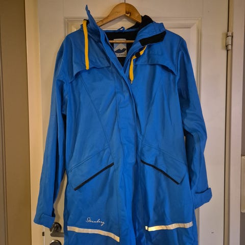 Mørkblå foret Stormberg regnfrakk med hette str M