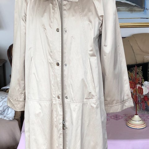 Anvendelig utsvingt kåpe i bomull og polyester. Skjult knepping, lommer i sidene og ermer med liten splitt i mansjetten.