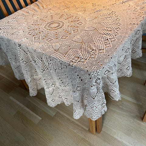 Lys blå løper med hvitt broderi