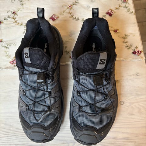 Merrell Fottur tursko i størrelse 41, farge grå. Skoene er designet for fottur og har en robust yttersåle med godt grep. Veldig lite brukt. Goretex