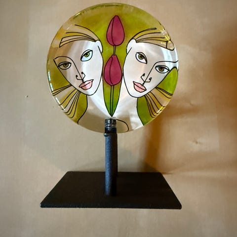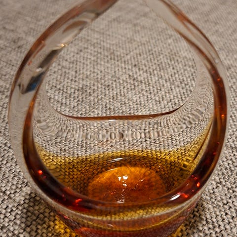 Gir et fint spill i glasset når lyset er tent; normal bruksslitasje på kanten, men ingen skår – perfekt som stemningslys på bord, hylle eller bad.