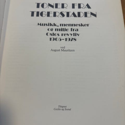 August Mauritzen- Toner fra Tigerstaden- Musikk, mennesker og miljø fra Oslos revyliv 1905- 1978- Oslo 1979- innbundet stor bok i meget bra stand- bra vareomslag- illustrert av Thore Hansen + fotografier- 158 sider.