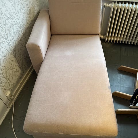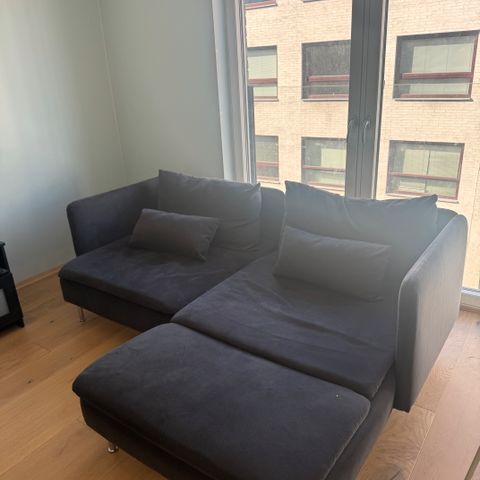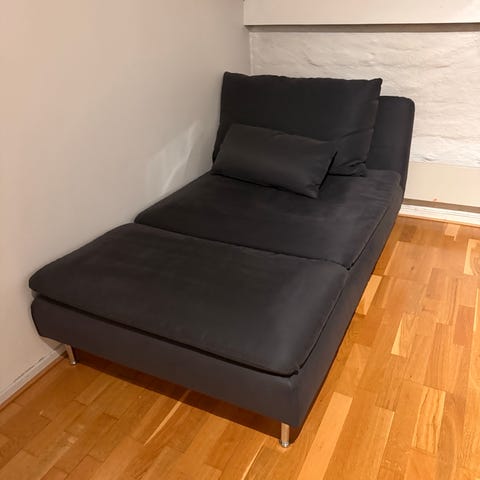 Pent brukt sjeselong selges. Har vært montert på sofa, men pga. flytting er det ikke lenger plass til sjeselongen. Mørkt grått trekk.