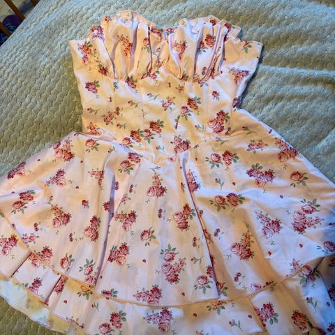 Supersøt cocktail kjole fra italienske Sandro Ferrone. Det står str. 44, men passer mer til en S, str. 36-38, bøyle rundt brystet og stretch på torso. Kjøpt til bryllupsfest, men fikk aldri brukt den.