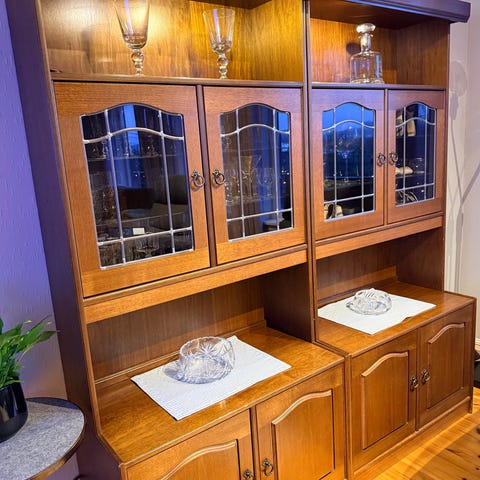 Antikk Vitrineskap i Mørkt Tre med Glassdører