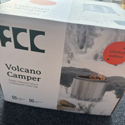 Selger en Volcano Camper – en kompakt, effektiv og rentbrennende bålpanne som er perfekt til både terrasse, hage, skogstur, strand og hytta. Den er helt ny, uåpnet og kommer med kvittering og full garanti.
