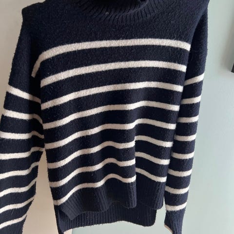 Herlig litt Oversize genser i svart med beige striper.