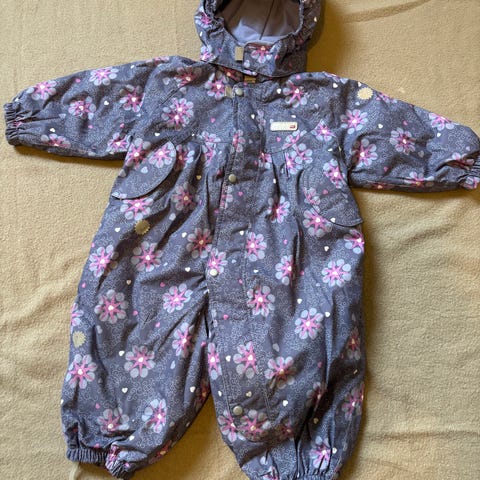 Name It vinterdress i størrelse 80, blå farge, designet for unisex bruk. Mangler fotstrikker, men kan de kjøpes hos Barnas Hus eller et annet butikk.