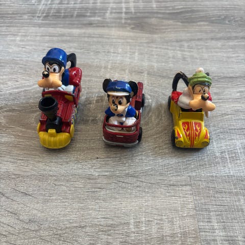 Vintage 2002 Nintendo Mario Kart lekebiler i rød og oransje plast. To små kjøretøy med karakterer fra Mario Kart-serien, laget i gjennomsiktig plastmateriale. Passer for barn som samler eller leker med Mario Kart-leker.