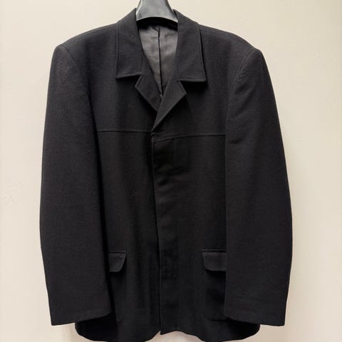 Mario Conti Kåpe i størrelse 52 for herre. Kåpen er grå og laget av 50% ull og 50% polyester. Den har knappelukking og er foret med polyester. Vedlikeholdsinstruksjoner inkluderer kun rens.